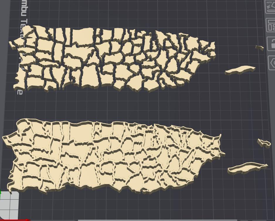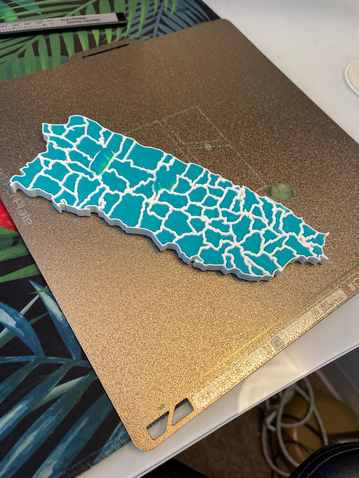 I opened the frame file in my 3D slicer. It looked exactly like Puerto Rico, with every municipality carved out as a precise cutout.